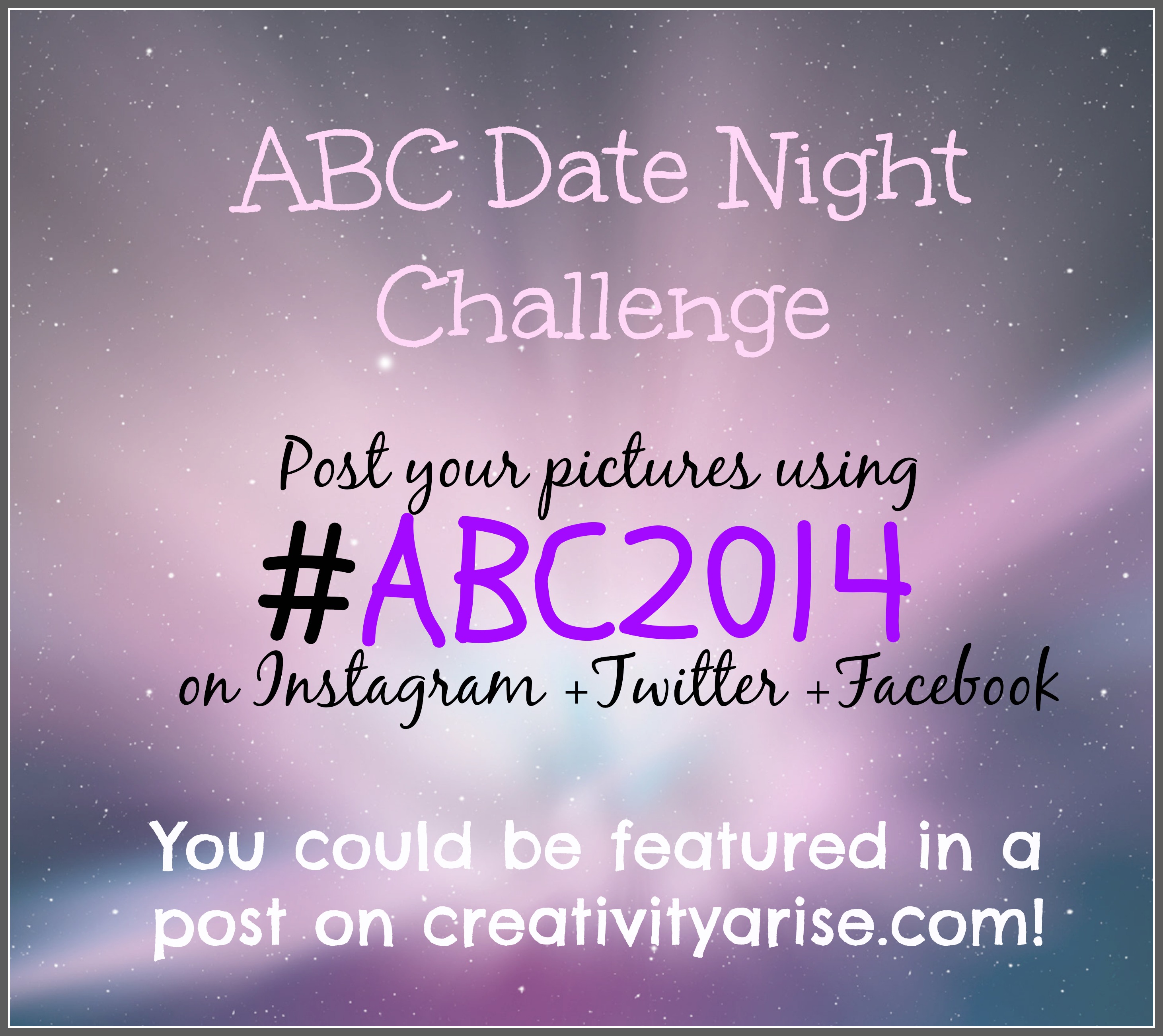 I set out to complete the ABC Date Night Challenge by New Year’s Eve last year but due to a myriad of different reasons, we were unable to complete all the letters. Fortunately we are both still committed to finishing the challenge because honestly it was really fun! We realized that it takes a little more time to plan our dates. Working around our demanding work schedules also made it a little more difficult to do a biweekly date as we had originally planned. So I’m being a little more realistic and shooting for at least 1 date per week. If we are able to do more than 1 that will just be a bonus :). As with the last time, I would love for all your lovers out there to join in on the action.
